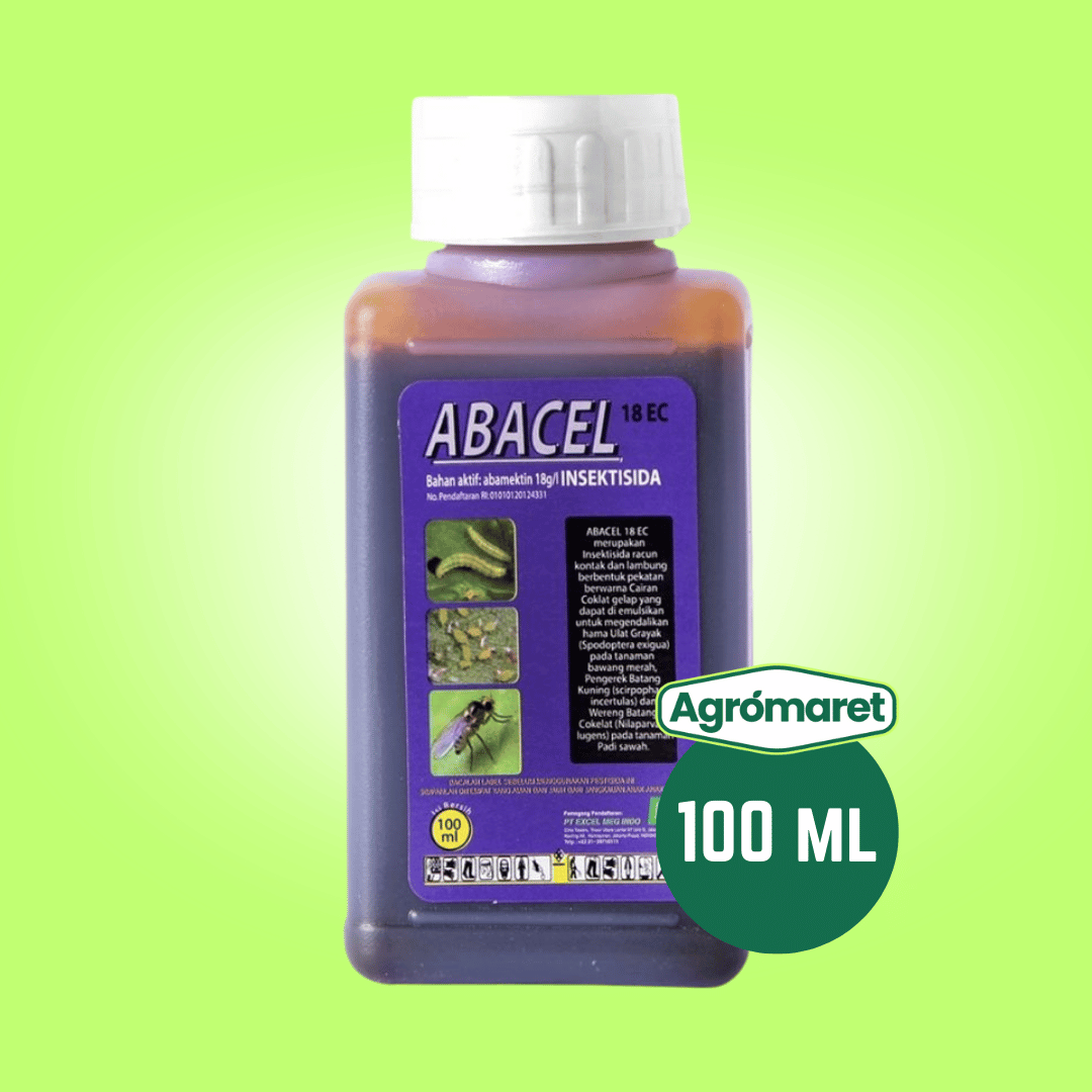 ABACEL 18 EC adalah insektisida racun kontak dan lambung berbentuk pekat yang dapat diemulsikan (emulsifiable concentrate/EC), berwarna coklat gelap, digunakan untuk mengendalikan hama penting pada tanaman hortikultura seperti cabai, bawang, tomat, kedelai, dan sayuran lainnya.